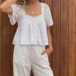 Crafted from 100% soft cotton and fully lined on the front for added comfort and coverage. The Goldie Blouse is perfect for both lounging at home and styling for everyday wear.