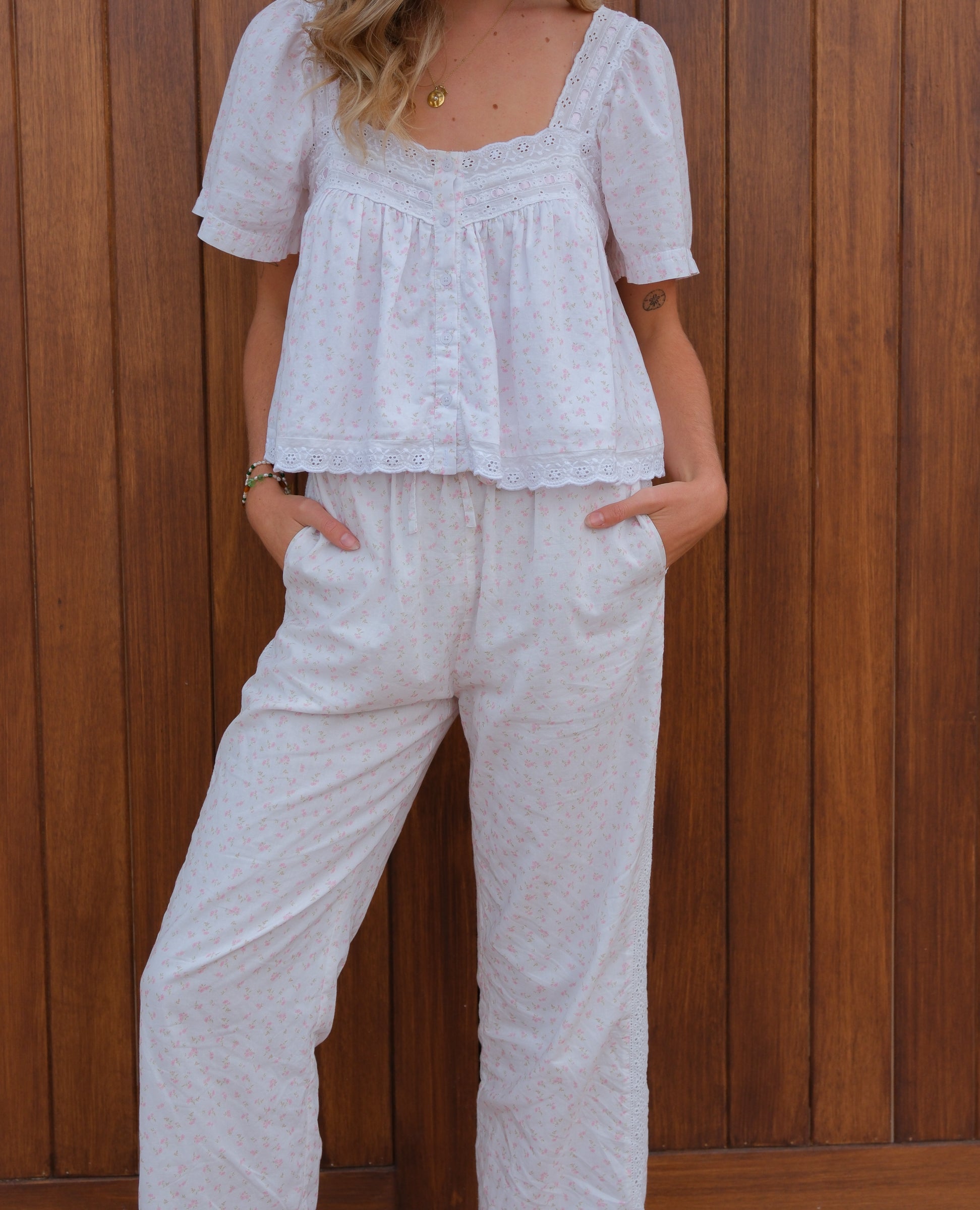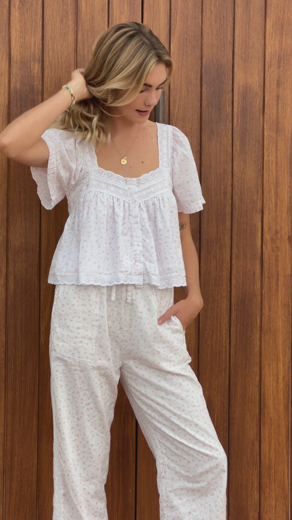 Goldie Blouse & Harper Lace Pants Floral Set