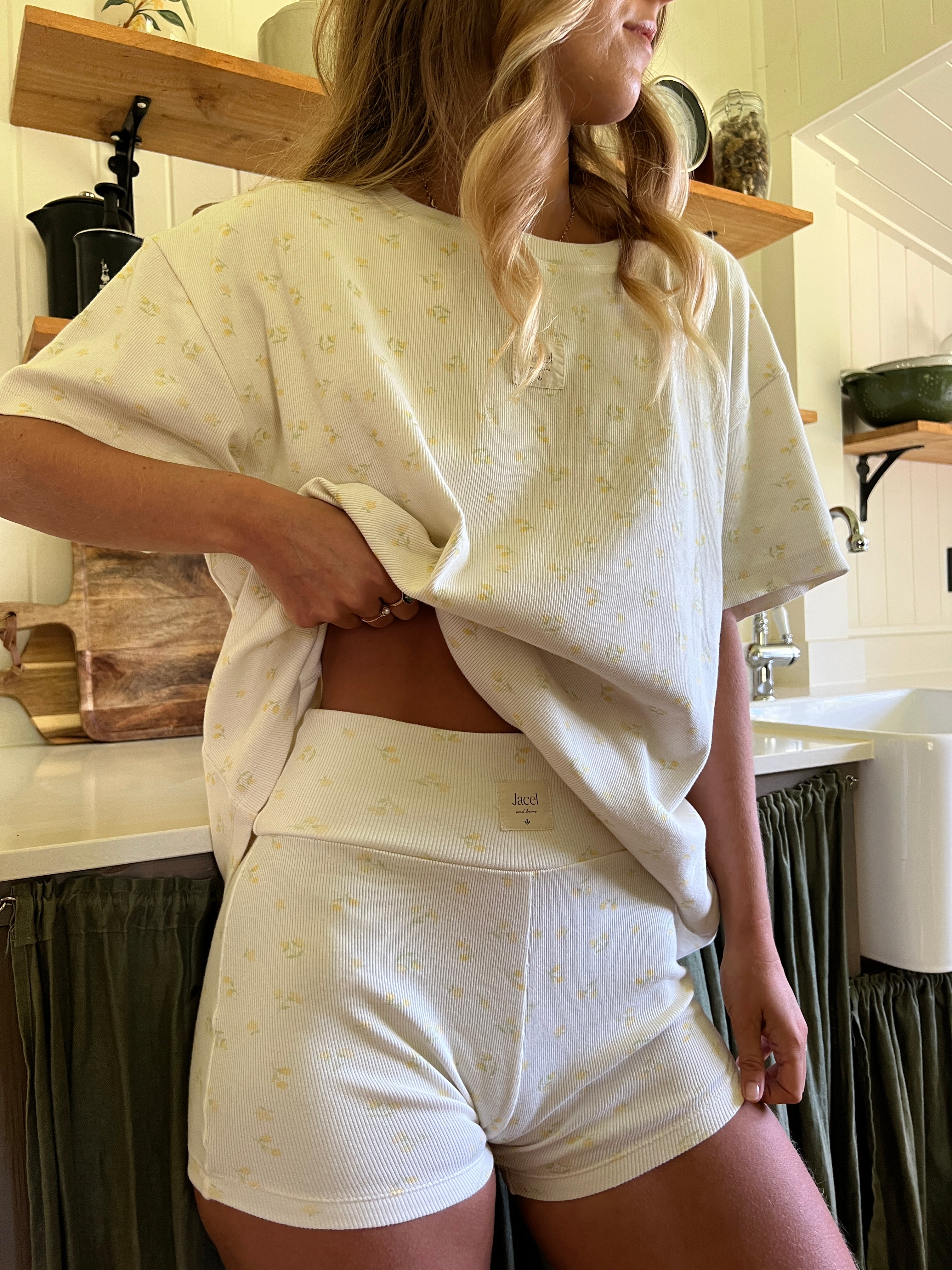 Elevate your everyday sleepwear with our Lottie set. Crafted from our soft ribbed cotton fabric, the Lottie set is both cute and undeniably comfy.