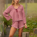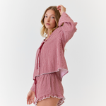 A reimagined take on our much-loved Remi Frill Shorts, the Novie Shorts are made from 100% soft pre-washed cotton seersucker in a deep red gingham colourway. With functional side pockets, delicate white lace trim detailing and a comfortable elasticated waistband. The Novie Shorts are perfect for lounging at home or styling up for days out.